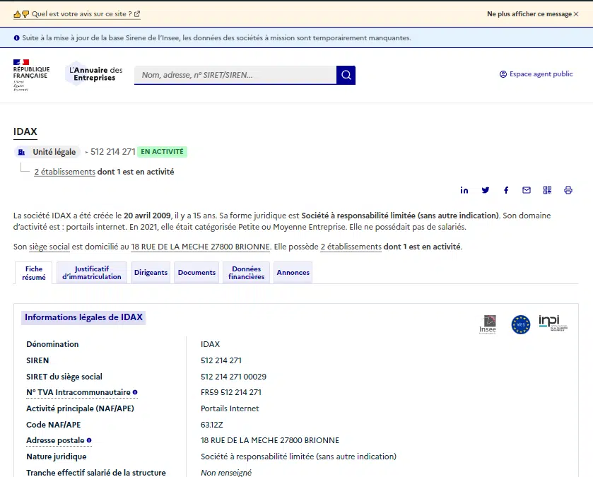 Le propriétaire du site est le dirigeant de la société visible sur cette page